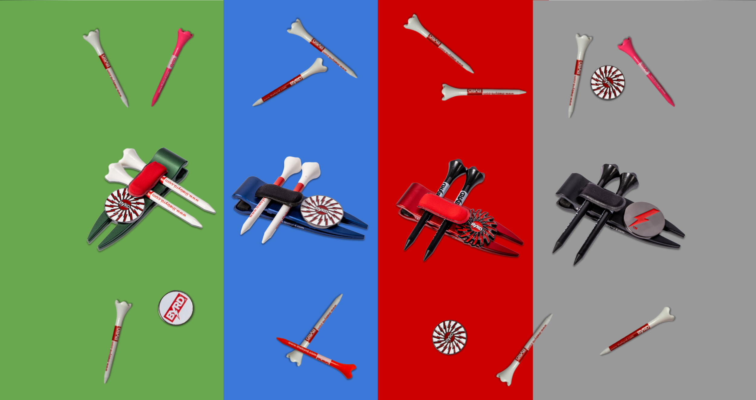 You don't see tour pros fumbling through their pockets every hole looking for tees, ball markers, divot tools - they have caddies for that. But most of us can't afford our own tour pro caddie so we invented a distant second. The Byrd Smart-Gear organizes your essentials efficiently so you don't have to send out a search party every hole.